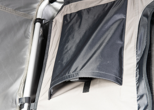 Lettvekts telt og attraktivt design. Teltet er utstyrt med gassdempere som automatisk åpner teltet og "ekstrataket" med ekstra ventilasjonsmuligheter.