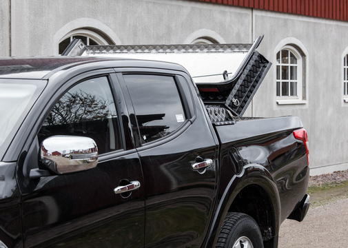 Et aluminiumslokk med mange bruksmuligheter, som kombinerer funksjonen av plan, lokk og arbeidsplattform. Lokket kan brukes sammen med original veltebøyle, lasteslede, kantbeskyttelse, og ulike lastestativ.