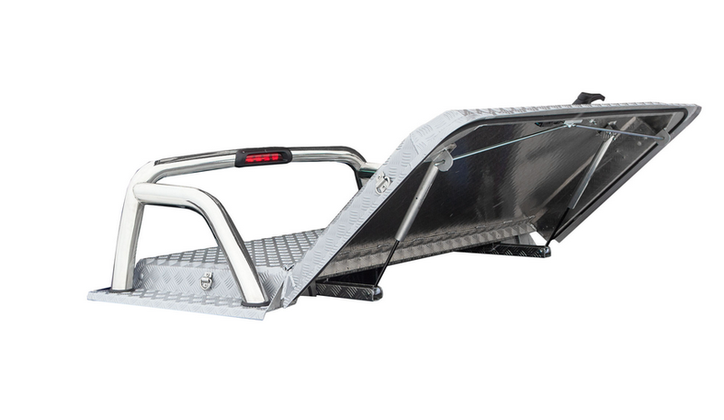 Et aluminiumslokk med mange bruksmuligheter, som kombinerer funksjonen av plan, lokk og arbeidsplattform. Lokket kan brukes sammen med original veltebøyle, lasteslede, kantbeskyttelse, og ulike lastestativ.