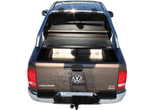 Lekkert uttrekkbart planlokk som passer til Volkswagen Amarok Double Cab (4-dørs) med original veltebøyle påmontert på planet fra bilimportør.
